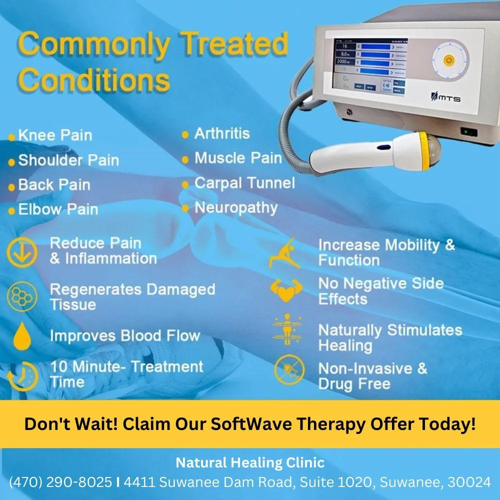 As part of this SoftWave Therapy™ special, you will receive the following at your appointment at Natural Healing Clinic: